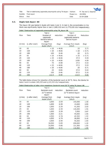• 荷兰VITENS 实验室军团菌、细菌总数灭活效果试验